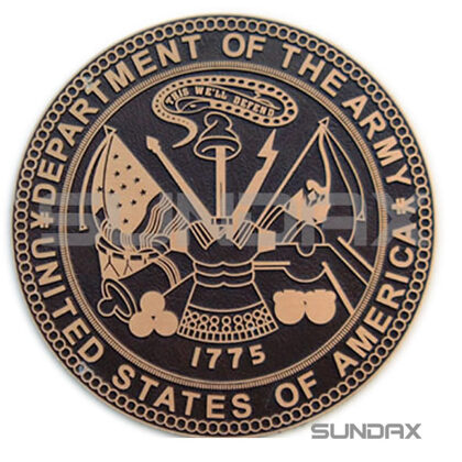 Sundax offers special pricing on cast seals in the many common military and government designs (including Army, Navy, Air Force, Marines, Coast Guard, Merchant Marines, Department of Homeland Security, POW/MIA & Dept. of Veterans Affairs). Other seals not shown can be manufactured for an additional cost. Email for quote [email protected]. Multi-color seals can also be produced with an additional charge.